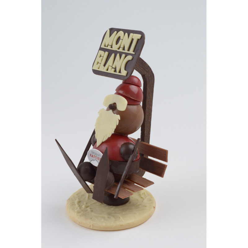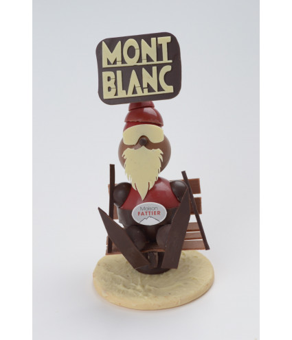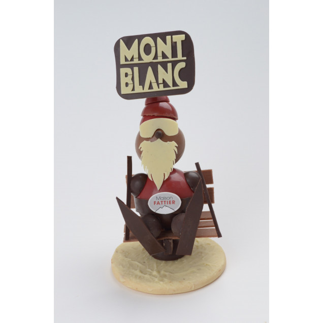 Notre Père-Noël aux quatre chocolats (noir, lait, blanc et framboise), garni de friture de Noël, confectionné par nos chocolatiers pour le plaisir des petits et des grands !