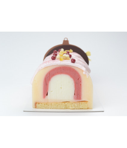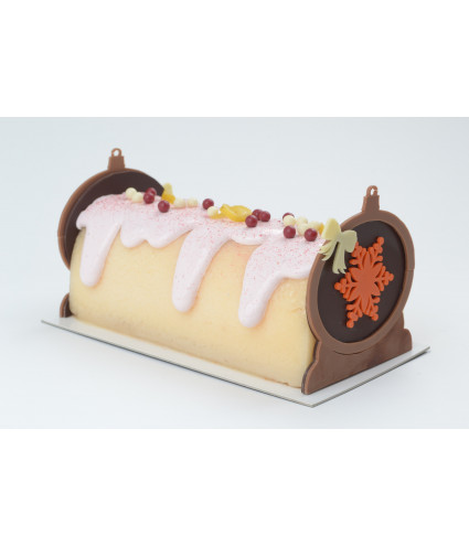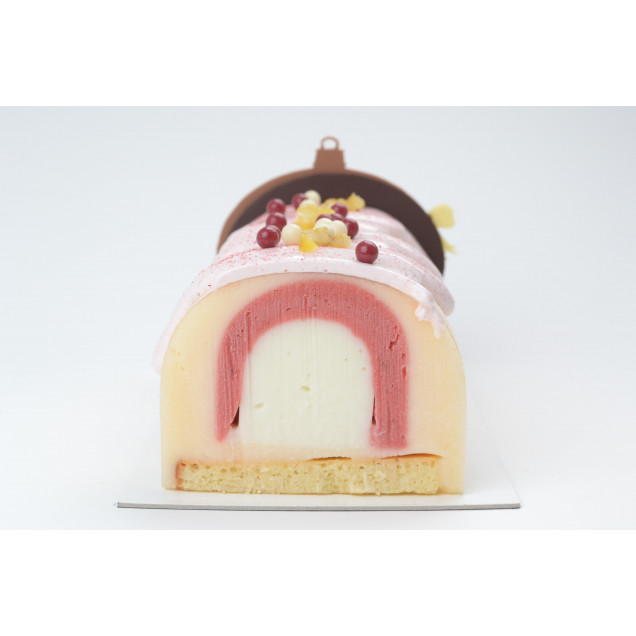 Un sorbet citron-basilic vif et parfumé, un sorbet fraise fruité et gourmand, un sorbet pamplemousse Corse acidulé et ensoleillé, le tout enveloppé dans un biscuit aux amandes croquant et sans gluten. Une bûche glacée tonique et élégante, où chaque cuillère révèle une explosion de fraîcheur et de saveurs naturelles. Parfait pour une touche légère et festive !