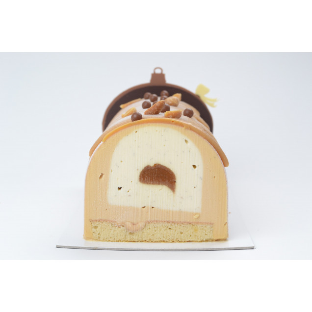 Une glace onctueuse à la vanille de Madagascar, un coulis caramel généreux parsemé d’éclats de cacahuètes croquantes, une crème glacée caramel beurre salé fondante et irrésistible, le tout reposant sur un biscuit aux amandes sans gluten. Une bûche glacée riche en contrastes, entre douceur vanillée, puissance caramel et touche salée, pour un plaisir gourmand et réconfortant.