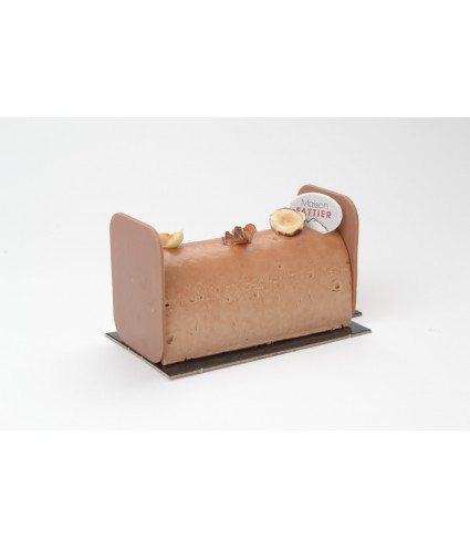 Un biscuit noisette fondant, un crémeux gianduja onctueux et gourmand, une ganache chocolat lait veloutée et une ganache montée chocolat lait-noisette légère comme une mousse. Chaque texture s’assemble pour un voyage doux et réconfortant, où la noisette torréfiée rencontre la rondeur du chocolat lait. Une bûchette sans gluten, irrésistiblement fondante et généreuse.