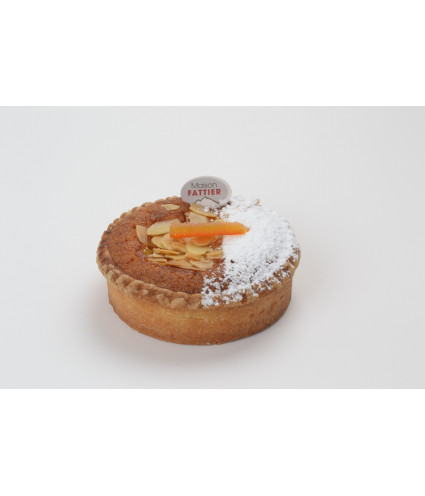 Tartelette à la pâte sablée très moelleuse garnie d'une crème d'amande fourrée d'une marmelade maison d'oranges.