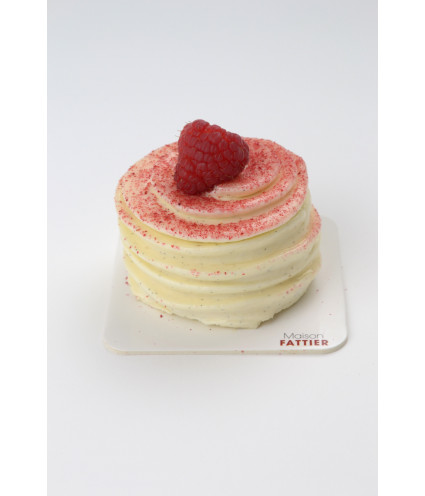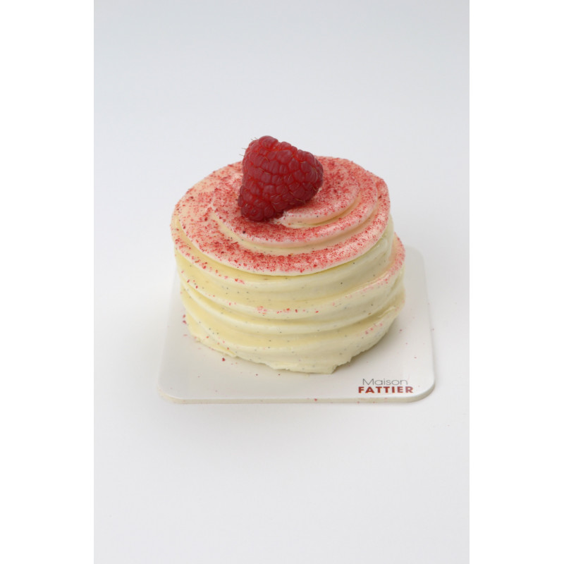 Biscuit viennois, confit de framboise, ganache montée framboise, ganache montée vanille chocolat blanc